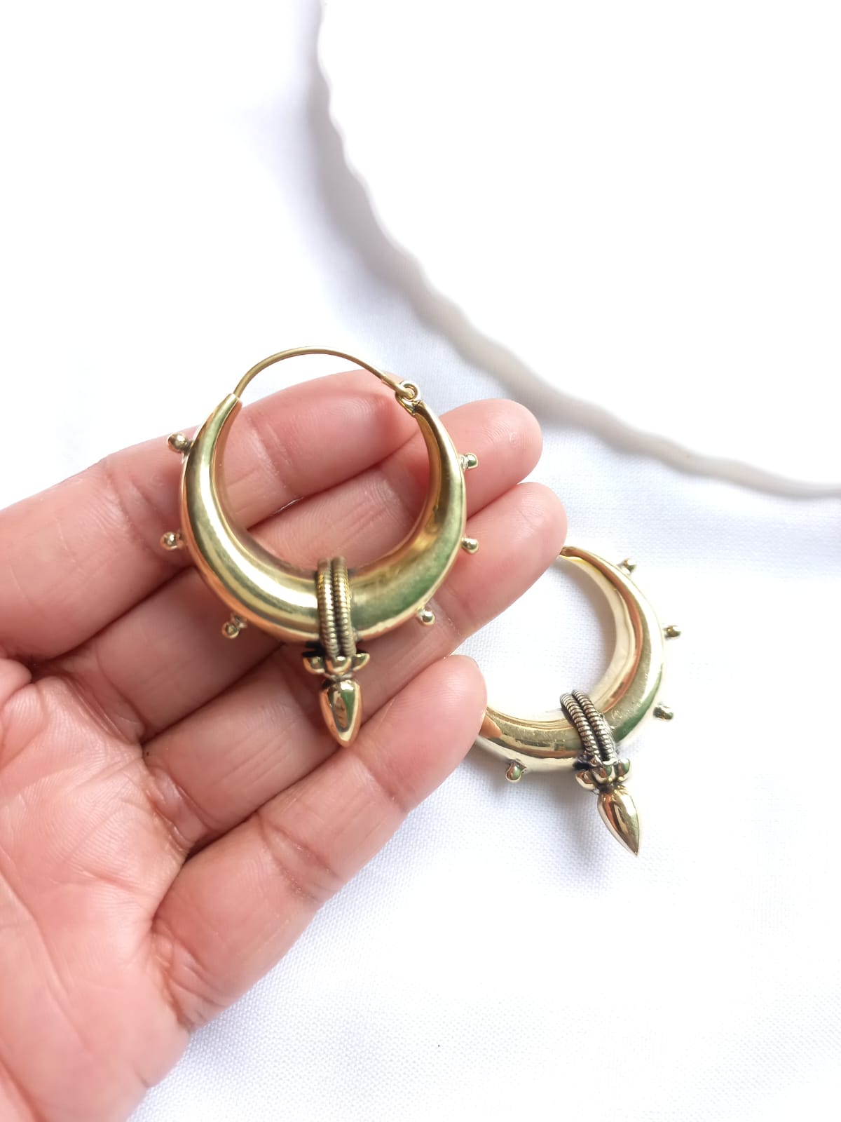 Spiky small tribal boho-style hoops. These hoops are completely handmade and made of nickel-free brass metal. These are very lightweight.