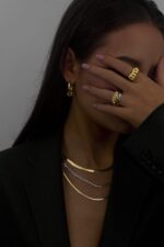 This sculptural gold croissant ring is an effortlessly chic statement, can be worn solo, but also looks great stacked.