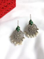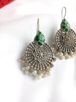This pair has green jadau natural stones with silver plated pure brass base. This pair is lightweight and looks like pure silver.