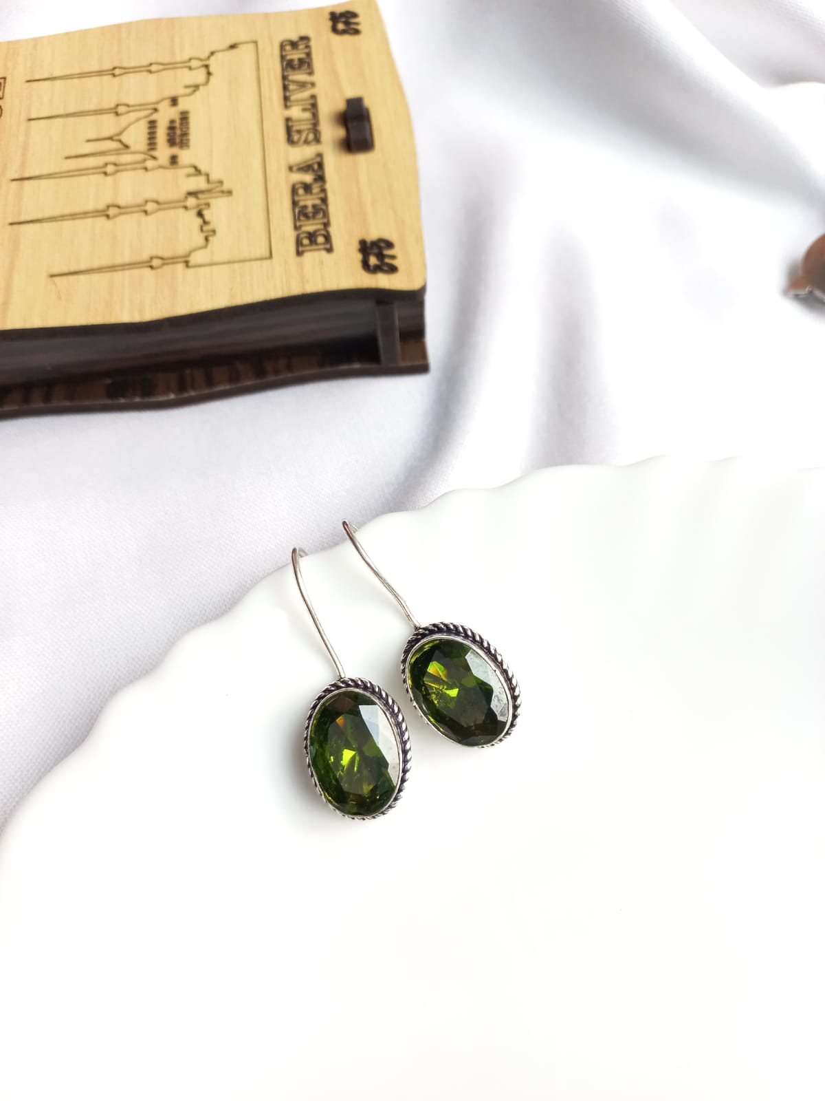 The green zirconia stones pair is perfect for a casual and office look. Light in weight and looks like real silver jewelry. Made of german silver metal.