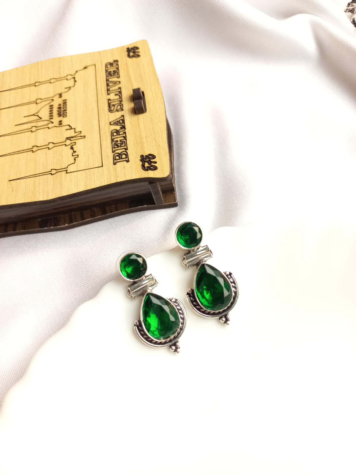The green zirconia stones pair is perfect for a casual and office look. Light in weight and looks like real silver jewelry. Made of german silver metal.