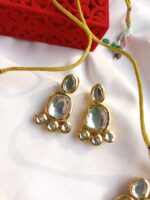 The stunning Kundan necklace with back meenakari design is a perfect necklace for the wedding season. It comes with a matching pair of earrings.