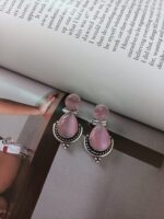 The pink stones pair is perfect for a casual and office look. Light in weight and looks like real silver jewelry. Made of german silver metal.