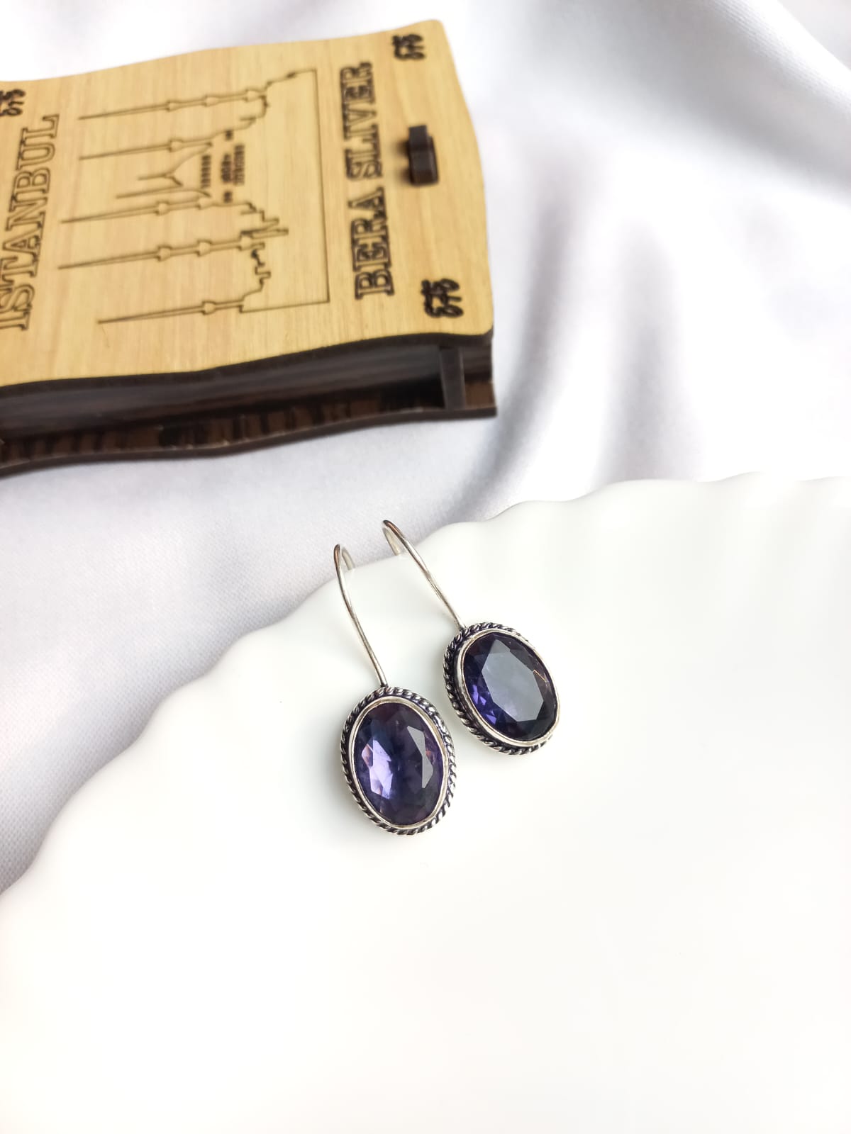 The purple stones pair is perfect for a casual and office look. Light in weight and looks like real silver jewelry. Made of German silver metal.